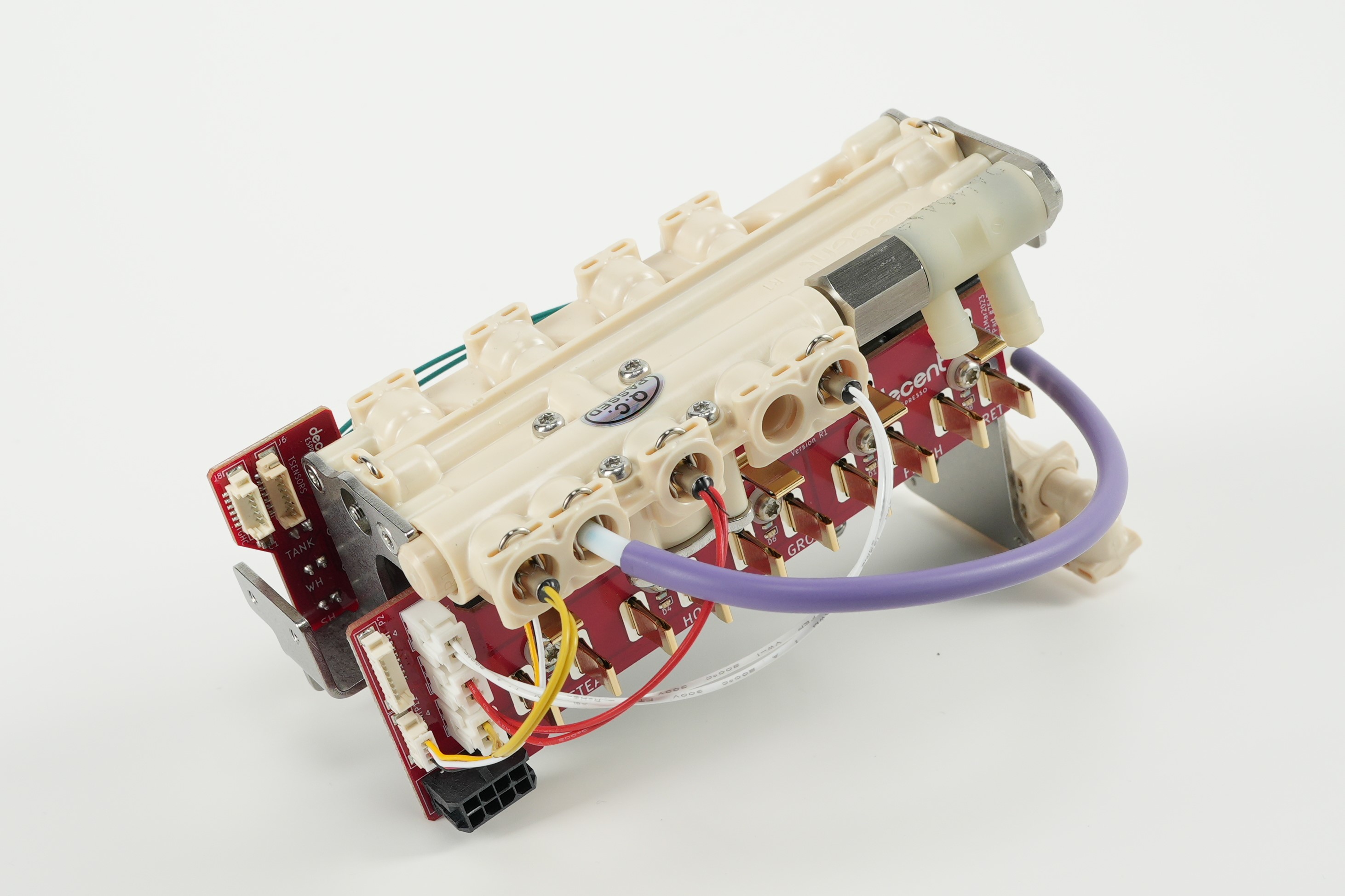 - 內部「混水器」(水流導引裝置)從不可維修的CNC加工零件轉變為可維修的模製零件(例如,可以更換故障閥門)。這樣做的好處是維修成本更低。這款全新的「一體式」AIO混水器向後相容於所有先前的DE1型號,如果上一代混水器缺貨,我們將使用這款新混水器來維修您的機器。我們發明了一種無需焊接的彈簧夾式連接器,實現了閥門的無焊接連接,同時解決了閥門焊點開裂而造成的壽命問題。